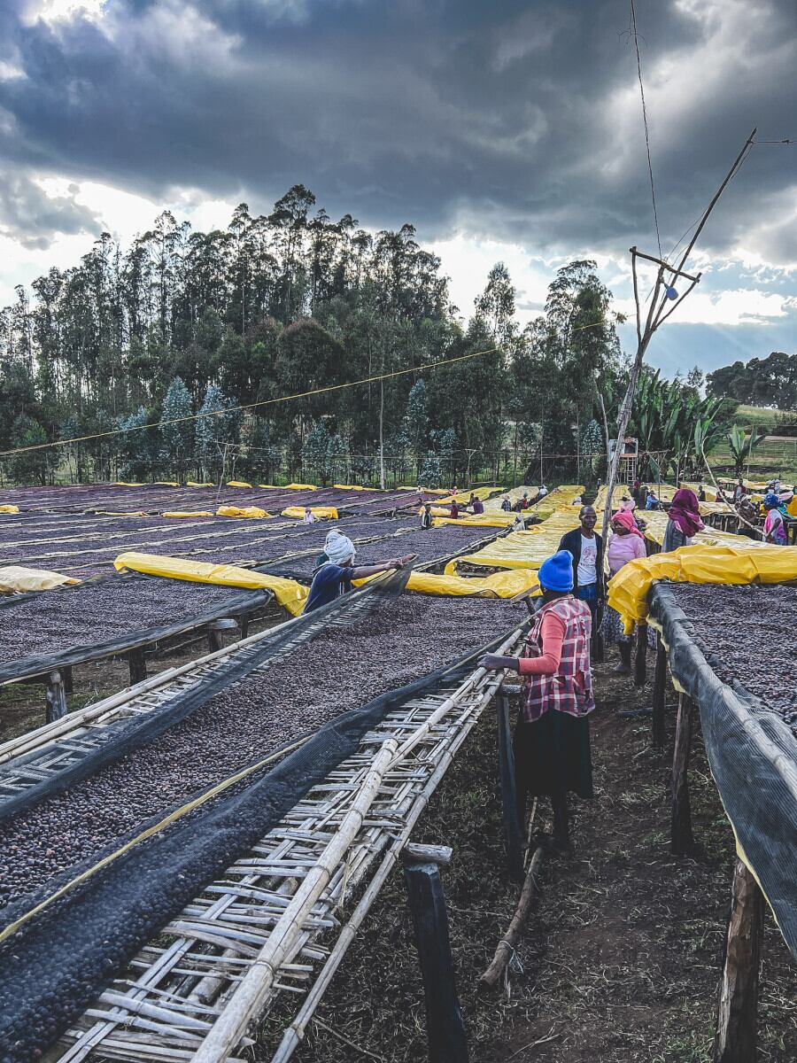 このロットは、**密閉タンクで約36時間の嫌気性発酵(アナエロビック)**を経て、アフリカンベッドで18〜20日間じっくりと天日乾燥されたナチュラル精製。徹底した熟度選別とソーティングにより、雑味のないクリアで華やかなフレーバーが際立ちます。